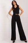 This elegant set consisting of a vest and pants is a sophisticated combination of style and comfort, perfect for formal meetings or days at the office. Made of high quality polyester, ensuring durability and elegance for many seasons. The vest, with a heart neckline, adds a chic and classy touch, buttoned, emphasizes the silhouette while allowing freedom of movement. The pants, with decorative darts on the front, adding a subtle charm, have wide legs, which makes the set light and elegant. The length of the pants and the high waist make the set look extremely elegant and professional. Side pockets in the pants provide convenient storage for small items, making this set both stylish and functional. The composition of the material is 100% polyester, which guarantees its durability, ease of cleaning and preservation of its ideal shape. This elegant set will be perfect for work or special occasions, emphasizing your professionalism and refined taste in fashion.