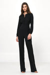 A jumpsuit is a closet item that saves you time in creating your daily outfit. It is a ready-made creation in which you will present yourself extremely elegant regardless of the occasion. Our model will emphasize your waist and, thanks to straight legs, lengthen your legs. The suit is fastened at the front with buttons visible on the outside. The delicate material sits softly on the silhouette. Softoffice in its full edition.