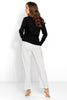 Comfortable fashionable women's pajamas Momenti Per Me Naomi Black-Ecru. Model with long sleeves and long pants in contrasting colors. Top with a classic cut, bottom with looser legs with a black bow at the waist.
