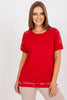 Short sleeve blouse with a round neckline. Decorative inscriptions at the bottom and on the sleeves. A perfect everyday choice.