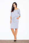 The season's trendiest cotton sweatshirt dress. Simple cut makes it fit every figure. Waist cut off, with adjustable width. Dress has 3/4 sleeves.