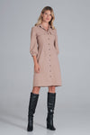 Midi shirt dress, slightly waisted with a collar. The dress has 3/4 sleeves with a cuff. Buttoned at the front. Pockets at the bust.