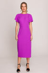 Elegant and feminine midi dress with a fitted cut that emphasizes the silhouette. The covered top gives it a classic character, while the deeper V-neckline at the back adds subtle sensuality. Short sleeves provide comfort and versatility for various occasions. The dress fastens with a hidden zipper on the side, which allows it to fit perfectly on the body. The side slit adds lightness and freedom of movement. Designed and made in Poland, with attention to detail and high quality craftsmanship. Perfect for elegant outings, receptions, and special occasions.