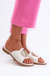 Elegant women's flip-flops made of eco leather. Set on a flat heel, they provide comfort and stability. The ornamentation adds charm, which makes the flip-flops a perfect choice for summer days, both for everyday wear and for more formal occasions.