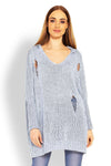 Puffy hooded sweater. Sweater with decorative holes. Oversize cut with a pointed neckline. Sweater made of soft yarn. Acrylic 100 % Size...