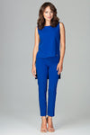Stylish set of sleeveless blouse with extended back and classic trousers with turned-up legs. A simple cut of the blouse and great trousers add self-confidence. Perfect set for an evening or for the city.