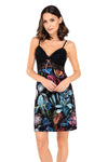 Exceptional nightdress made of soft viscose, made of beautiful, patterned knitwear with picturesque peonies. The effect is even better in person - flowers as if hand-painted, catch the eye. Soft and elastic, perfect for relaxation is a promise of successful relaxation. The top is lacy, black, profiled, soft cups lined with a delicate material underneath. Adjustable straps.