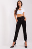 Women's casual sweatpants are the perfect choice for everyday, comfortable outfits. Made of soft cotton with a touch of elastane, they provide comfort and flexibility when worn. The high-waisted model beautifully accentuates the waist and ensures a better fit. The pants have elastic cuffs at the ankles and a drawstring at the waist, adding a sporty character and allowing for adjustment of the waist size. Practical side pockets increase functionality. The smooth fabric is decorated with a print on the legs and delicate studs, adding a fashionable, original look. Great for a walk, shopping, or home relaxation, a must-have in every casual wardrobe.